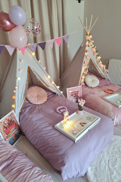 Een slaapfeestje is op zichzelf al een ervaring om nooit te vergeten, maar met mijn tipi’s wordt het pas écht bijzonder. Geen standaard slaapfeestje, maar een knusse, sfeervolle overnachting vol herinneringen en gezelligheid.
